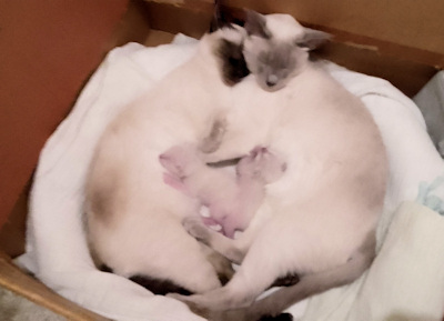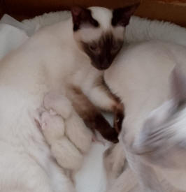 toen we een paar nestjes Siamezen (nog van het 'oude' type) hebben gehad. We
