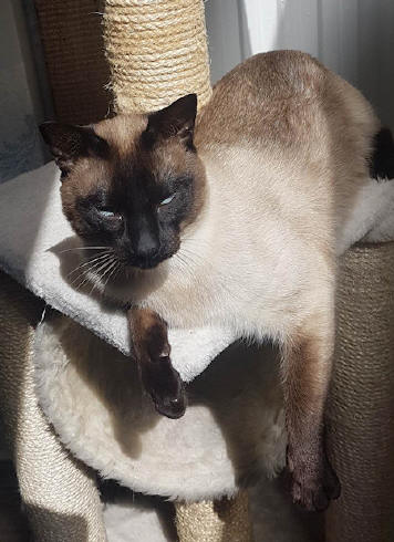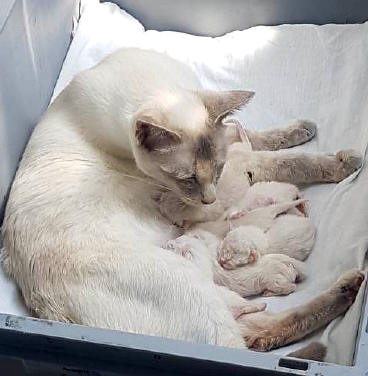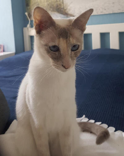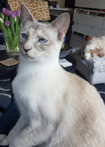 Dat werd Rosa een Blue Tortie Point van de Rode Lotus. En daarna kwam een kater; Bas (Aegon Wat Arun) een Seal Point.